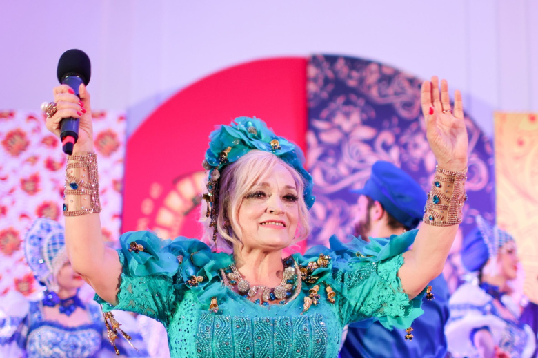 Когда Надежда Никитична вышла на сцену в ярко-бирюзовом платье, в кокошнике и с бубликом на голове, зал закричал от восторга. Кадышева открыла вступление русской народной песней «Коробушка». Зумеры вряд ли ли знают, что она написана на фрагмент поэмы Николая Некрасова «Коробейники». Кадышева пожелала всем приятного вечера, хорошего настроения, радости и любви. «Всем вам земной поклон», — резюмировала певица. Она постоянно притоптывала, махала руками и своим фирменным жестом приводила публику в восхищение.